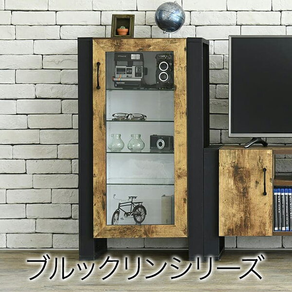 ★クーポン配布中♪26日1:59まで★【送料無料】ブルックリンスタイル キャビネット コレクション ラック 5段 幅50 奥行33 高さ90 ガラス リビング 収納 棚 ラック 飾り棚 シェルフ 脚 脚付き デザイン 小物 ガラス 扉 付き 見せる収納 ブルックリン ガラス