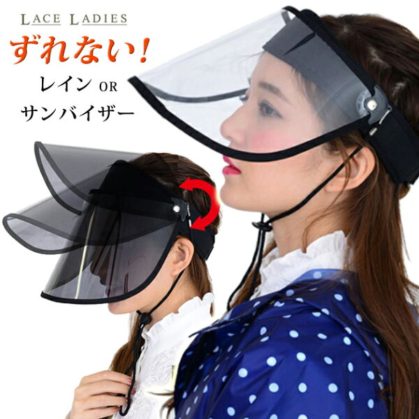 つばは角度調整ができる可動式のため、顔周りをしっかり雨からガード、 化粧崩れが心配な女性も安心 額や頭に直接触れるバンド部分にはメッシュ素材を使用しており、 バイザーの両サイドには付属の落下防止ストラップを取り付けできます。