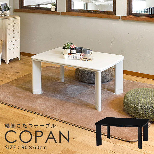 こたつ 長方形 幅90cm 暖房 家電 白 黒 リビングテーブル 座卓 鏡面仕上げ 1人暮らし シンプル おしゃれ コンパクト ヒーター カジュアルこたつ コパン96T COPAN (WH/BK) 【送料無料】