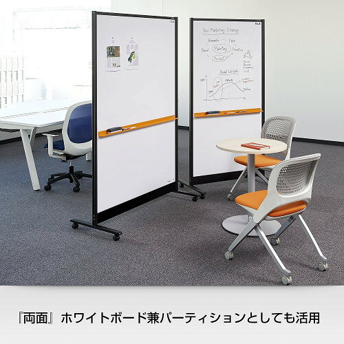DETAIL ブラックフレームでデザイン性を高めたパーティション兼用両面ホワイトボード サイズ幅125×奥行き56×高さ184cm 重量15kg メーカー型番wbcs1218dsk 付属品マグネットトレイ(脱着可能)、マーカー(黒・赤各1本)・イレーザー1個 組立設置オプション料金\1650(税込) 対応商品コードブラック_428055