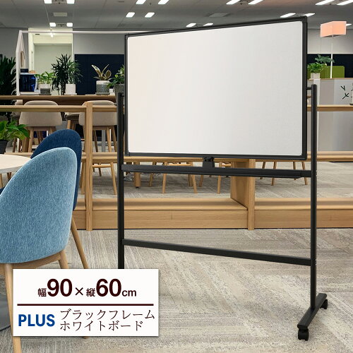 ブラックフレーム ホワイトボード 両面タイプ( 脚付き 無地 イレーザー付き マーカー付き マグネット可能 キャスター付き スタンダード オフィス 会議室 ミーティング 打ち合わせ リビング学習 塾 予備校 学校 研究室 教授 大学 高校 授業 幅90cm 幅900mm 縦60cm 縦600mm)